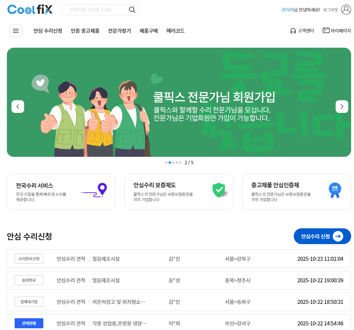 -냉동공조·냉장냉동설비 수리 시장, 온라인 매칭 서비스로 효율성·편의성 UP -소비자·수리업체 모두에 ‘Win-Win’…견적 비교부터 매칭까지 ‘원스톱 서비스’ 구현 쓰리알테크(대표 권재범)가 공조냉동 및 냉장냉동설비를 사용하는 소비자와 수리 서비스 업체를 온라인(www.coolfix.kr)에서 매칭해주는 A/S 전문 플랫폼 ‘CoolFix(쿨픽스)’를 공식 오픈했다고 최근 밝혔다. ‘CoolFix’는 소비자와 수리 서비스 업체를 스마트폰, 노트북, 데스크탑, 태블릿PC 등 사용자가 선호하는 디바이스 환경에서 실시간으로 연결해, 견적 비교부터 완료까지의 모든 과정을 하나의 통합 환경에서 처리할 수 있는 플랫폼이다. 주요 기능으로는 ▲다양한 수리업체의 견적을 한눈에 비교할 수 있는 견적 매칭 시스템 ▲수리 진행 상황을 앱/웹으로 확인 가능한 실시간 상태 모니터 ▲품질 보증 및 사용자 후기를 통한 업체 신뢰도 관리 서비스 ▲데이터 기반 수리 유형 분석 및 맞춤형 서비스 제안 등이 포함된다. 또한 엔지니어들에게 디지털 PCB의 에러코드 및 사용법을 제공하고 모바일 자동견적 시스템을 통해 견적서를 바로 제출할 수 있는 기능을 지원한다. 더불어 표준계약서 제공을 통해 1인 사업자 및 엔지니어들의 서비스 이용 절차의 편의성과 안전성을 제공한다. 특히 기존에는 소비자가 수리를 의뢰하기 위해 여러 업체를 각각 검색하고 일일이 문의해야 했으나 ‘CoolFix’를 이용하면 몇 번의 클릭만으로 각 분야별 복수의 업체로부터 견적을 받고 손쉽게 비교·선택할 수 있다. 업체 입장에서는 플랫폼을 통해 보다 폭넓은 고객 접점을 확보할 수 있어 신규 고객 유입과 영업 효율성 향상에 도움이 된다. ‘CoolFix’는 국내 수리 서비스 시장의 비효율성을 해소하고, 서비스 품질을 향상시키기 위한 목적으로 기획된 만큼 HVACR 분야의 신생 수리업체들에게는 더 높은 기대 효과가 예상된다. 출처 : 냉동공조저널(https://www.hvacrj.co.kr)